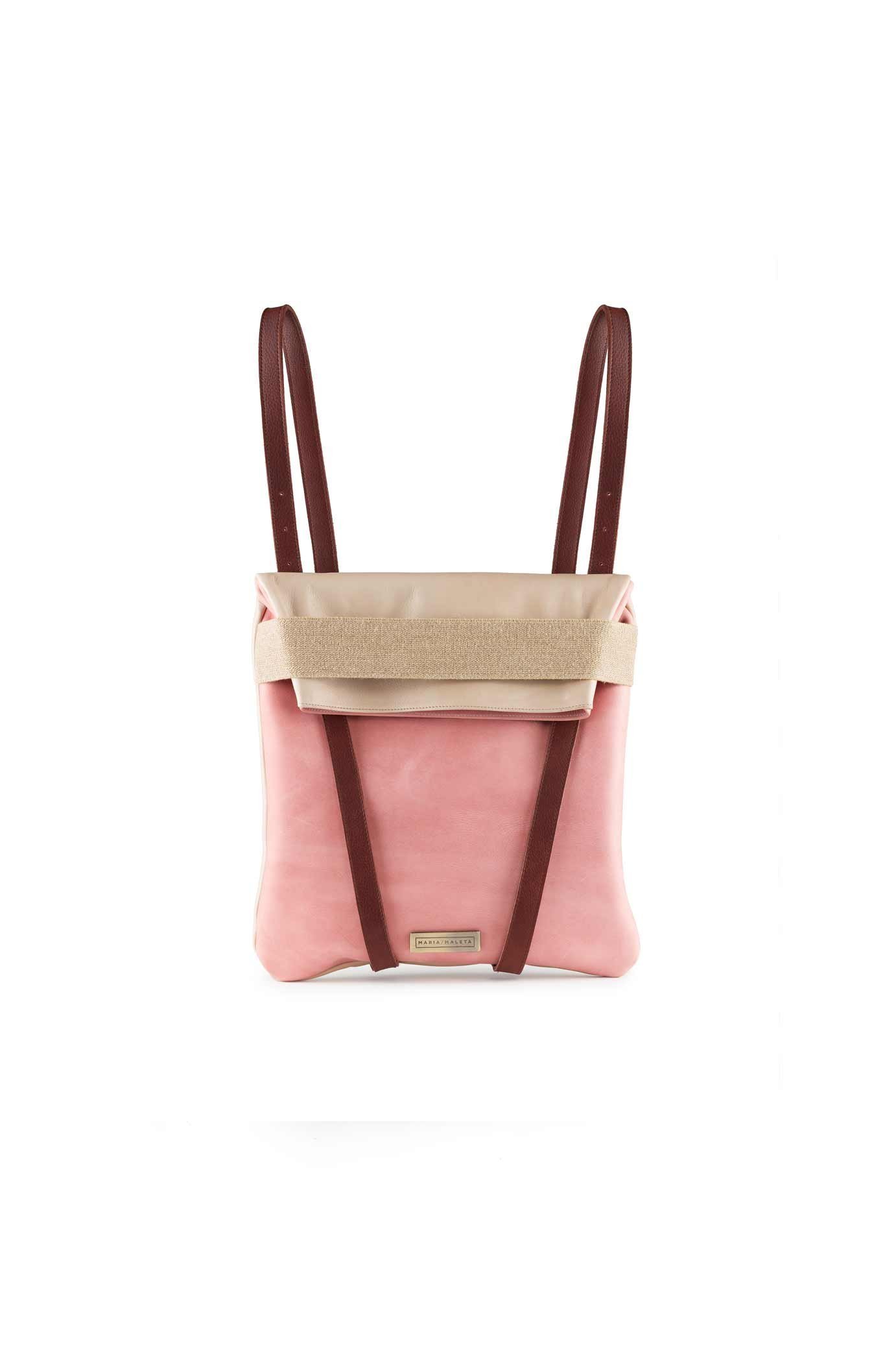 Women’s backpack for 13 inch laptop. Pink and beige leather. Beige elastic. and adjustable straps 70cm – 80cm. Two inner pockets. Dimensions: 35x33cm. With an extra handle strap. REF. MMBPL Made in Portugal