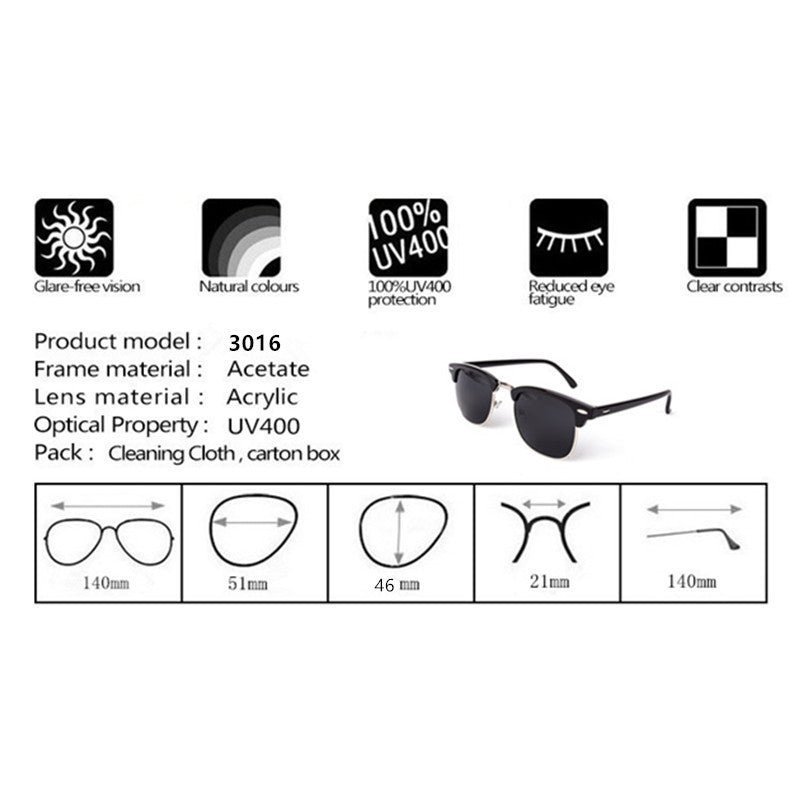It is designed to have a fashion classic cool style. It is fit for all face shapes. These sunglasses are for men and women. Its frame is made of alloy and lenses are made of polycarbonate.